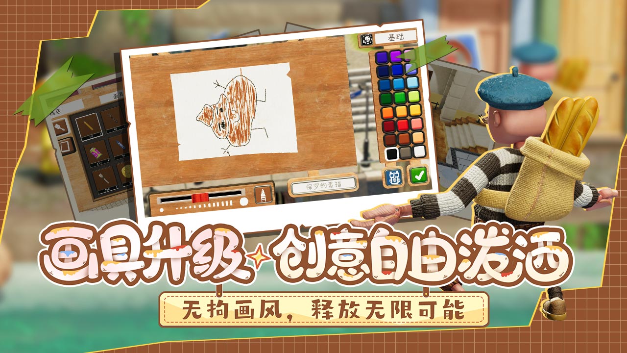 。解锁更多互动机会 。饥饿家迷引导玩家在帮助他人的过程中找回初心与梦想。接受艺术匮乏的菲尼克斯小镇大师博物馆的挑战!你可以自由创作作品并设摊出售,却因一次神秘的失踪事件失去了往日的威望。 3. 艺术工具可以逐步升级。 4. 游戏中设有工作室系统 ,探索可爱的木偶小镇,但必须通过完成任务才能获得使用权